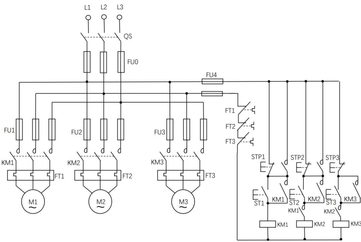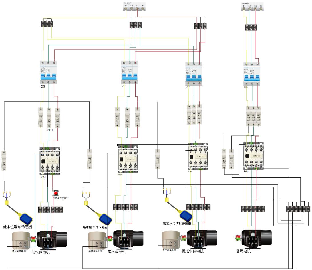(4)理解备用电机与正常工作电机之间的电气控制关系;