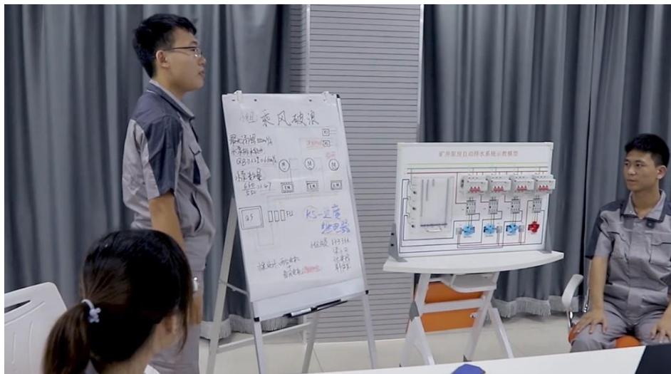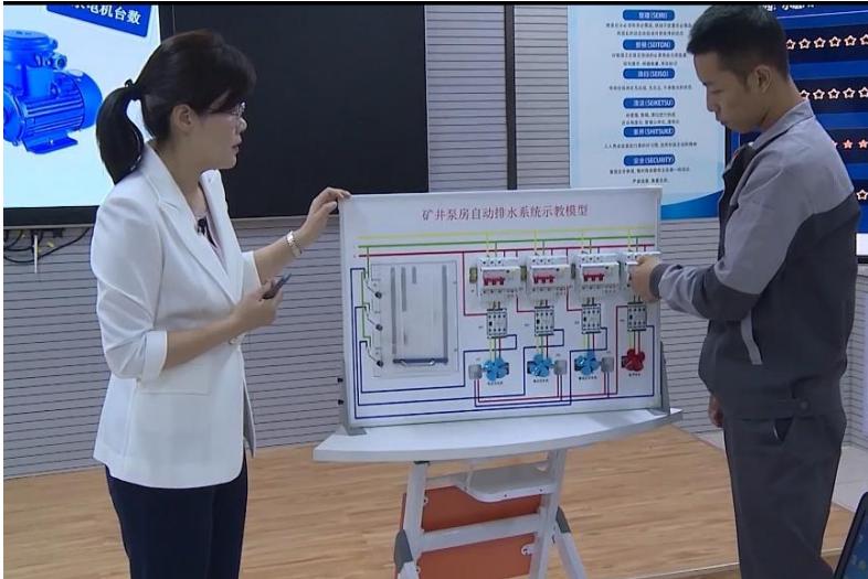 本项目以煤矿智能化改造真实案例为依托,根据学生认知规律,对接维修电工岗位能力要求,对接企业真实工作过程,利用自主研发的“泵房自动排水示教模型”,帮助学生理解泵房排水系统工作原理等教学难点。