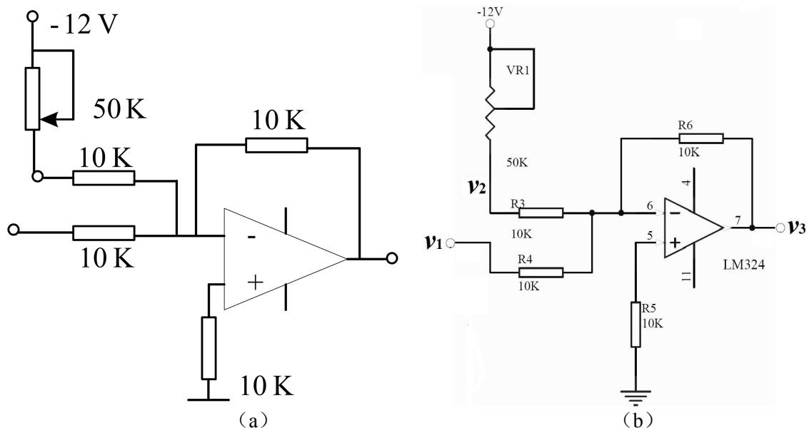 图 5. 反向加法器的原理图(a)和反向加法器部分电路原理图(b)