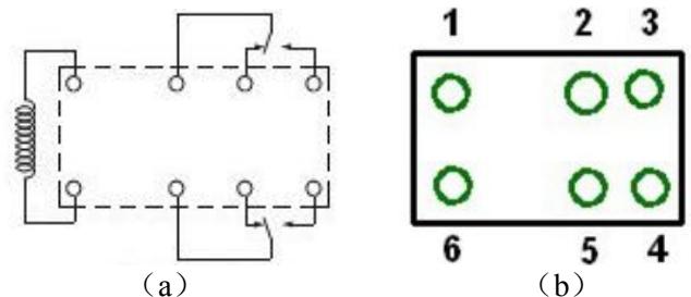 图 9. 继电器内部原理图(a)和继电器管脚图(b)