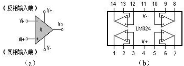 图 3. 运算放大器符号(a)和 LM324的引脚排列图(b)