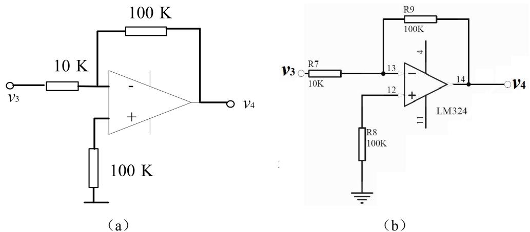 图 6. 反向放大器的原理图(a)和 反向放大器部分电路原理图(b)
