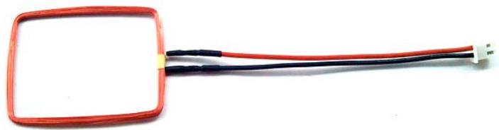 系统由阅读器和标签两部分组成。阅读器和标签之间利用电感耦合(磁耦合)原理,通过两只由漆包线绕制而成的空芯线圈作为耦合线圈进行无线通信。耦合线圈使用给定的如图 2 所示的空芯线圈,其外围尺寸约为 $5 3 \mathrm { m m } \times 4 4 \mathrm { m m }$ ,电感量约为 $5 0 0 \mu \mathrm { H }$ ,使用时可将线圈粘贴在电路板表面以作固定。