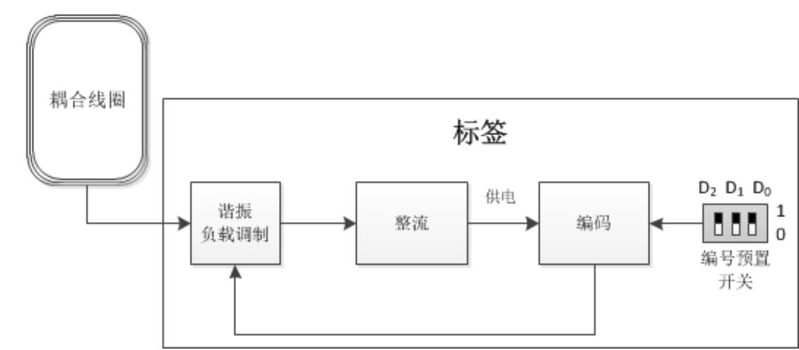 4) 设计合理的电子标签方案,包括线圈耦合电路、整流电路、倍压电路、电阻负载调制电路;