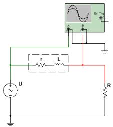 用示波器测量激励源电压U及电阻R上电压UR有效值。