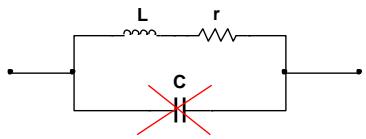 第二步:如图7-2,考虑到实际电感可以等效为一个理想电感与损耗电阻的串联再与分布电容并联的结构。而低频情况下电容相当于开路,其损耗电阻 $\mathrm { r }$ 可以用万用表测出。