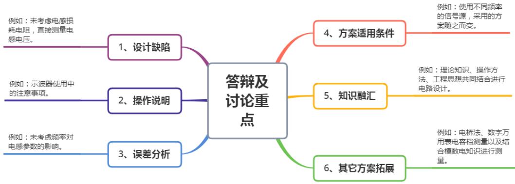 该阶段由教师引导同学,每种设计方案选取一组同学进行答辩(包括实际电路的搭建),并针对该方案进行分析讨论。重点在于: