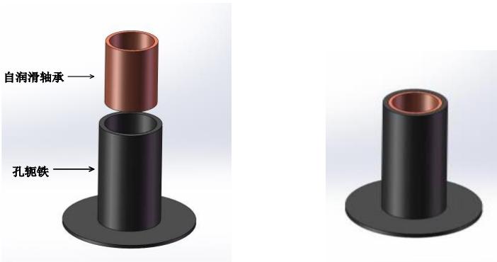 将轴套装入孔轭铁中,组装好后,自润滑轴承上边缘不高于孔轭铁上边缘,如图 8-12 所示。