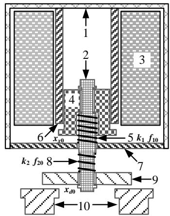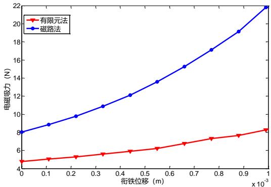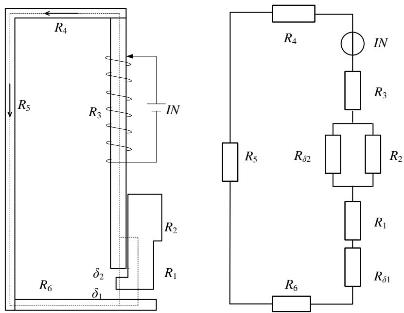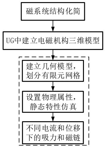 1)根据典型螺管式直流磁系统组成,区分磁阻与磁势,建立磁路计算模型,研究其主回路磁通与衔铁吸力间的关系;