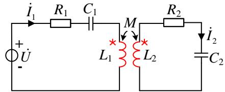 $$ [ R _ { 1 } + \mathrm { j } ( \omega L _ { 1 } - \frac { 1 } { \omega C _ { 1 } } ) ] \dot { I } _ { 1 } + \mathrm { j } \omega M \dot { I } _ { 2 } = \dot { U } $$
