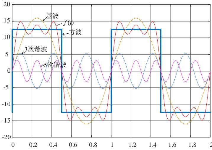 基波叠加三次谐波的仿真电路图如图 14 所示,输出电压波形如图 15 所示。