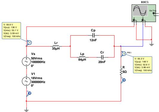 图 14 第一种多谐振电路三次谐波仿真图