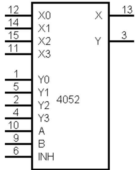 双四路模拟开关 CD4052 管脚图