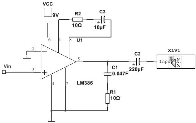 1)设计一个话筒放大器,为音响放大器添加一个声源,将驻极体话筒采集的声音,经过放大之后由扬声器播放出来。