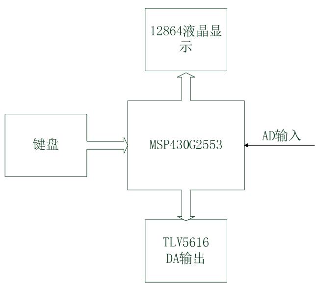 通过按键键盘来选择系统的功能,可以实现 DDS 输出频率调节,手动扫频和自动扫频功能的切换。
