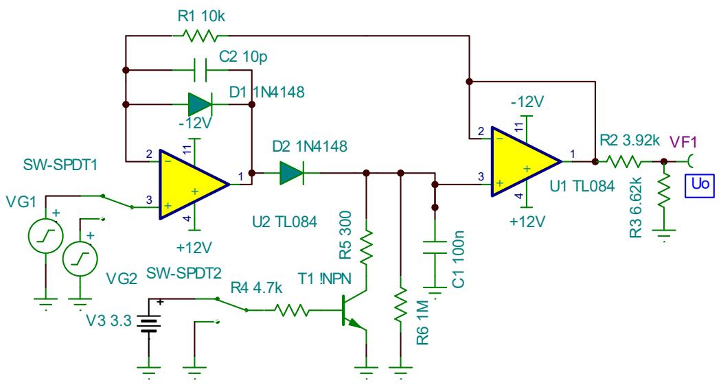 被测网络的输出信号还是正弦信号,此处的峰值检测可以将正弦信号的幅值以直流的形式表现出来,对于直流,单片机可以直接进行 AD转换,从而得到正弦信号的幅值。