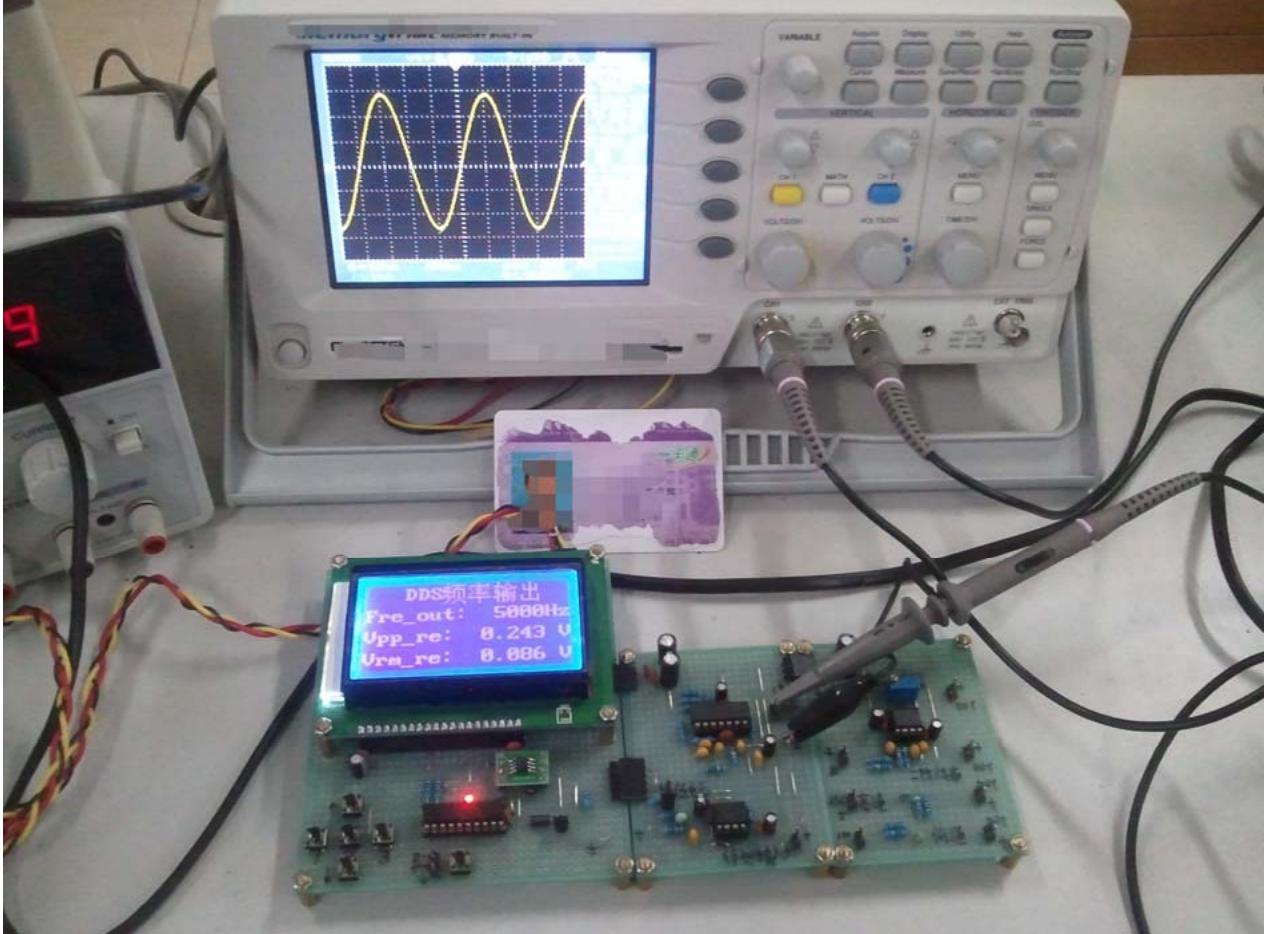 应用示波器测试 DDS 简易信号源的信号输出,更改信号输出频率,观察信号的幅度及频率,进行记录并与预定值对比。