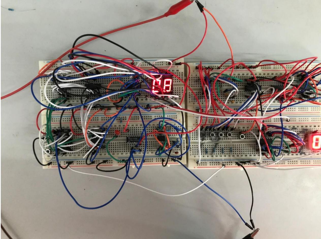 教师要介绍方案的设计思路,简要介绍组合逻辑电路和时序电路的设计方法、数码管显示原理,电路布局的规范性等;罗列出数字电路中常见故障,分类和归纳给出 “观察法”、“排除法”、“比较法”等常规解决办法;布置验收思考题。