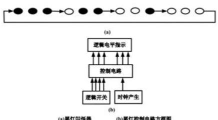 指示灯采用发光二极管,电机正反转模拟是采用移位寄存器 74LS194 实现当环形信号输出为右移 $1 0 0 { } 0 1 0 { } 0 0 1 { } 1 0 0$ 时,电机正转;当环形信号输出为左移 $0 0 1 { \ - } > 0 1 0 { \ - } > 1 0 0 { - } > 0 0 1$ 时,电机反转。0和 1用发光二极管指示。如图 5.6。