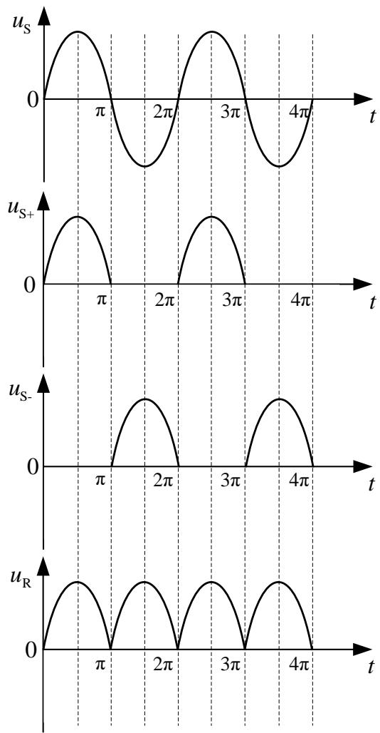 如此重复下去,最终在 $R$ 上便得到全波整流电压,其波形图如图 6 所示。