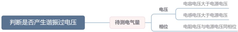 实验思路如图 9 所示,当频率接近谐振频率时,电源电压与电阻电压的相位差很小,由此可通过判断相位差来判断电路是否发生谐振。但此方法仅用于判断谐振,无法判断是否产生过电压。