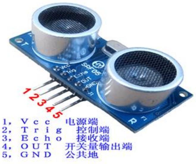 HY-SRF05 超声波测距模块可提供 2cm-450cm 的非接触距离感测功能,测距精度高达3nm。实物如下图 12。如下图引脚:
