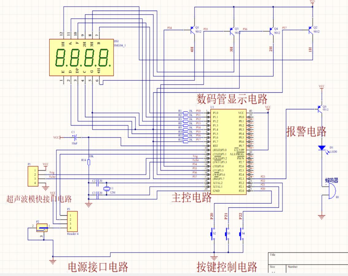 将整个系统划分为:超声波模块、显示模块,以及 51 单片机外围工作电路模块。