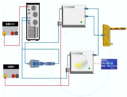 首先,利用仿真软件主要功能模块(ISO125K 读写器、125K 控制器,串口线、9V,2A 电源、125K 卡片)完成门禁系统设计,包括:仿真软件安装、软件操作指导、熟悉各模块的使用方法、参数设置。