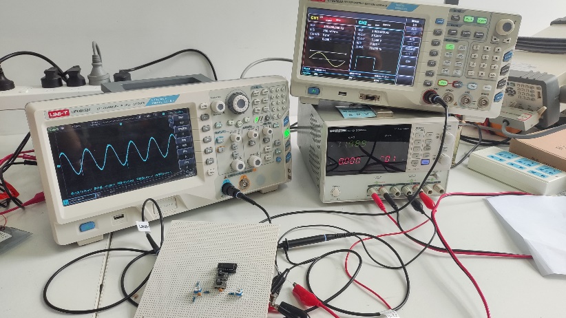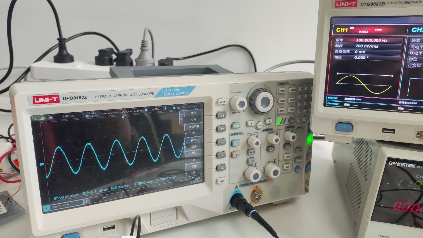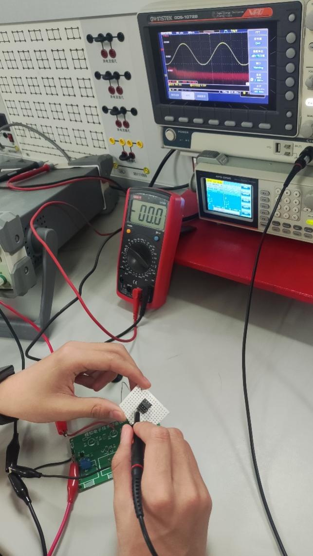 完成实验内容3)之后,选择合适的电子元器件完成实际电路板搭建和焊接,同时用信号发生器和示波器对电路进行调试;