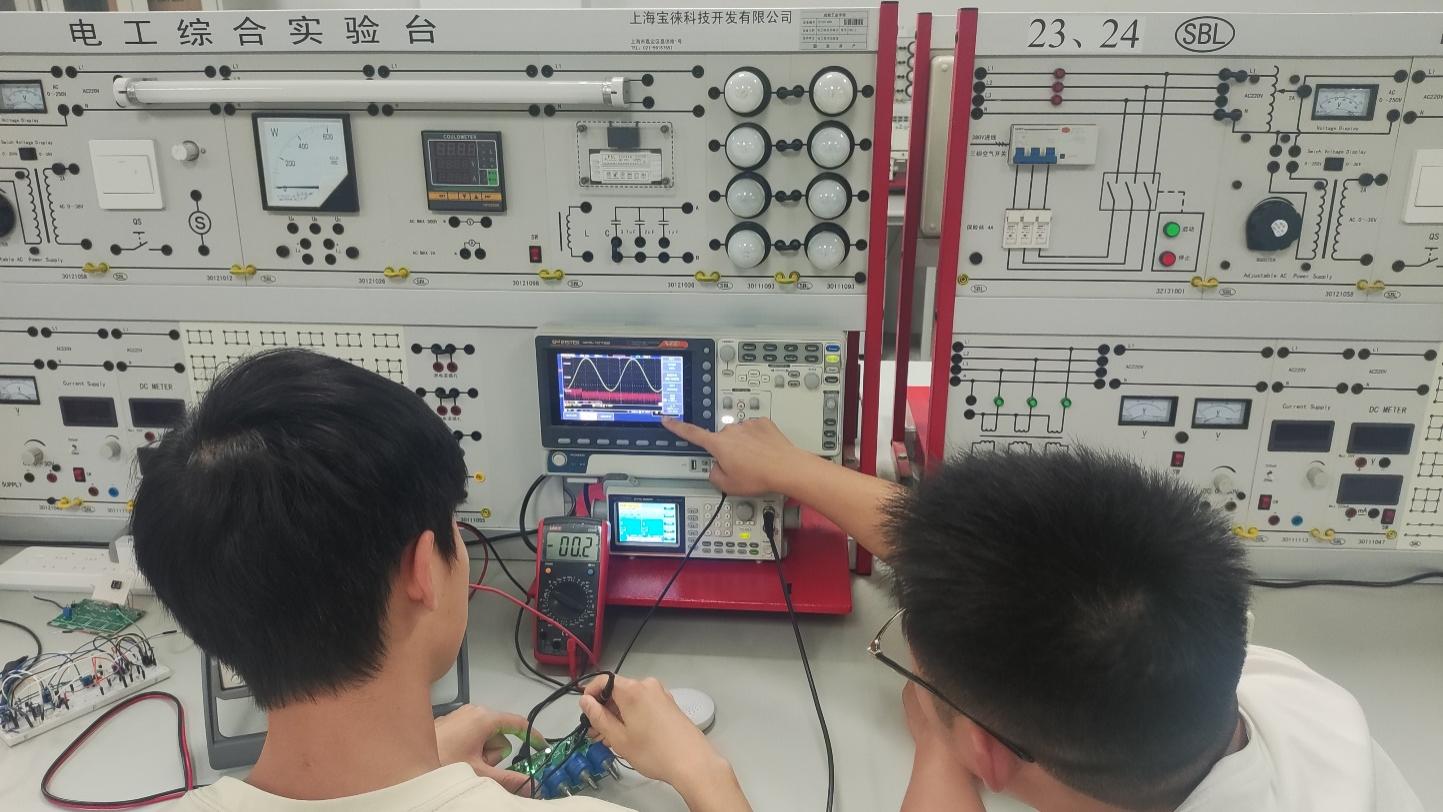 仿真验收通过以后,学生根据设计数据领取相应的电路元件和芯片进行实物焊接,老师需要对元器件领取及使用规则和安全问题可以详细讲解。焊机完成使用仪器仪表进行实物验证。老师在此部分要进行验收。按照各模块完成指标情况进行相应的评分。