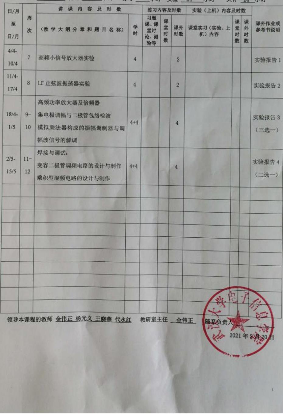 课程:高频电子线路实验院系:电子信息学院专业:电工通工电科电波班级:2019级
