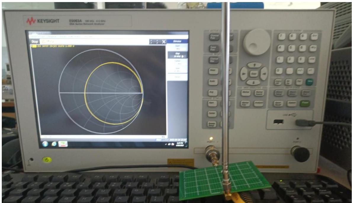 6) 利用网络分析仪和阻抗匹配软件,确定天线阻抗和匹配网络的参数,测量输入反射系数 S11,确定匹配电路元器件取值;