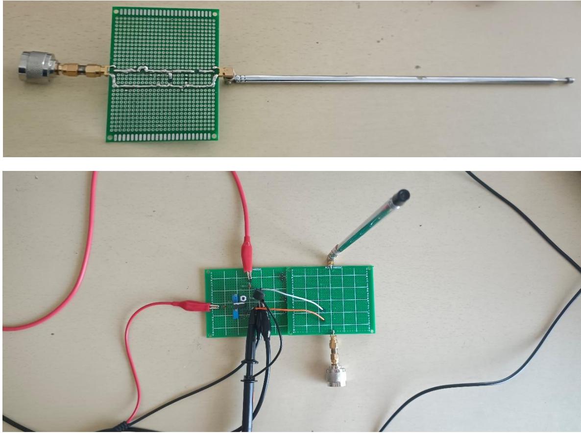 4)分别将电阻和天线作为功放负载接入电路,观察记录两种负载的输出波形和幅值,对比分析天线负载的匹配效果。