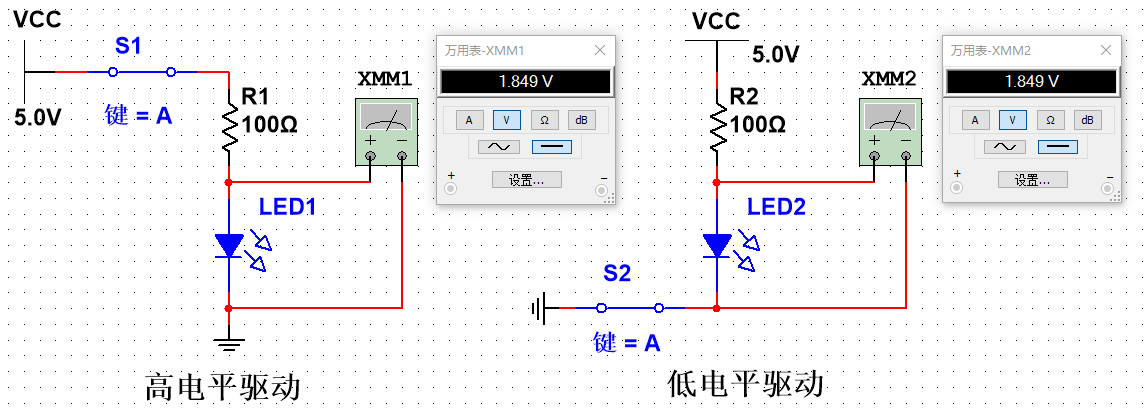 (1)闭合开关,让LED灯亮起来(高电平驱动、低电平驱动)。→手动控制