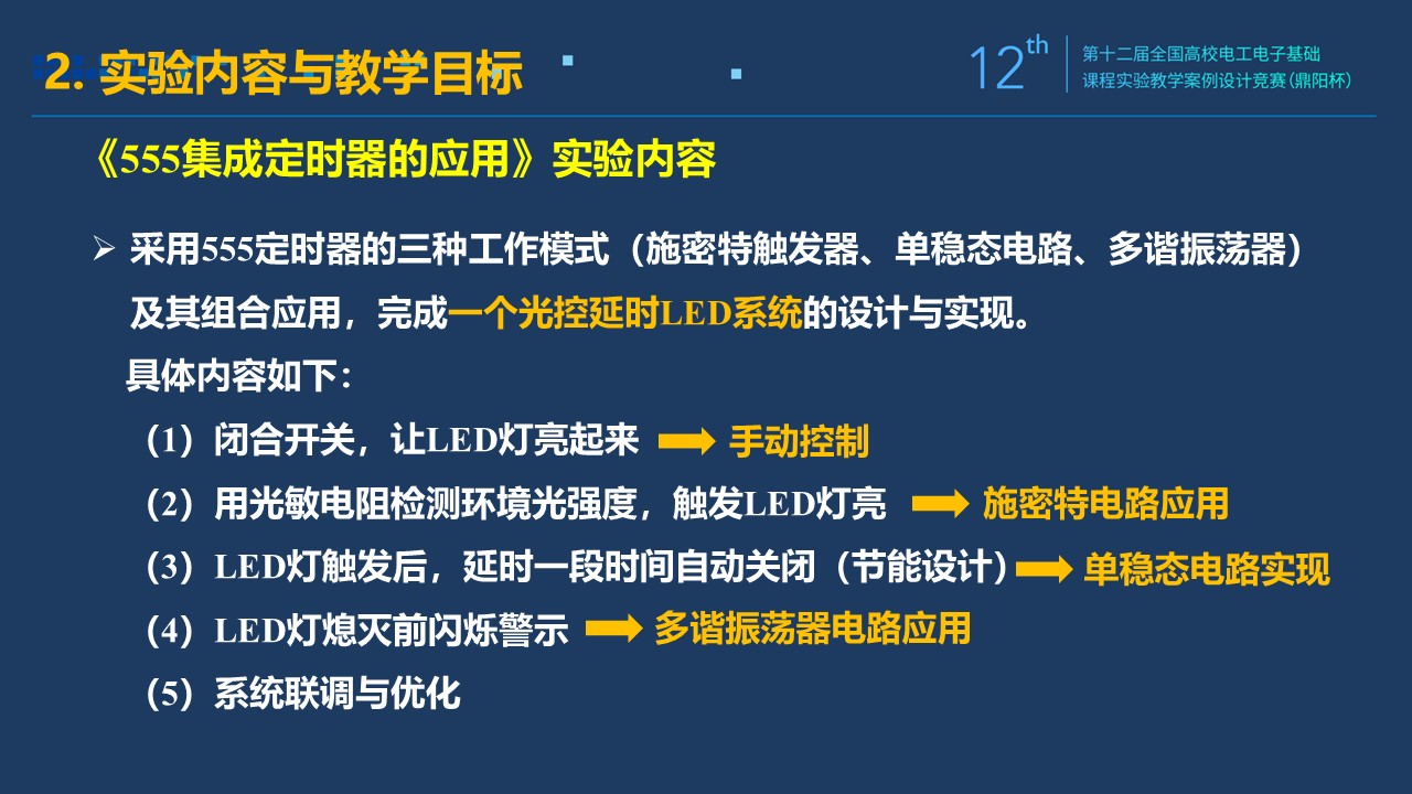 本项目要求学生掌握555定时器的三种工作模式(施密特触发器、单稳态电路、多谐振荡器)及其组合应用,完成光控延时LED系统的设计与实现。