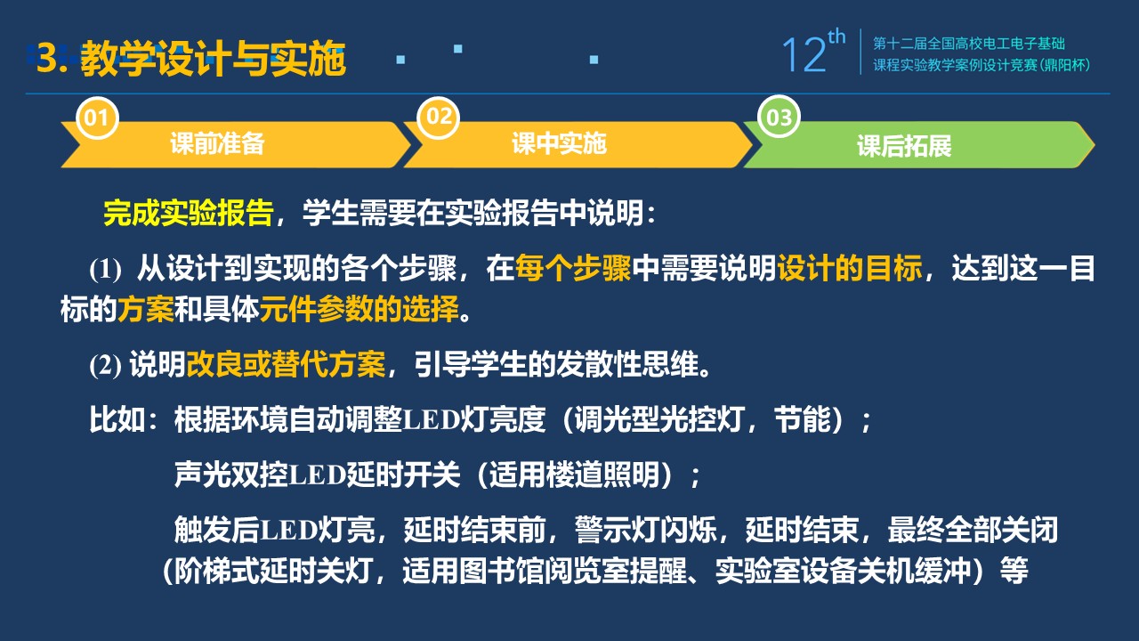 要求学生提交完整的实验报告,实验报告要求包含:理论计算与实测数据对比分析,系统优化方案(如:加入PWM调光、声光双控等扩展功能)。