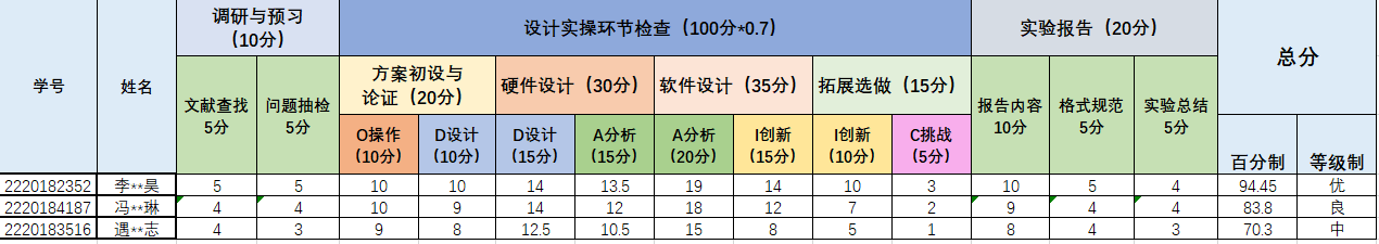 (4)考核注重实验报告的规范性与完整性,同时注重实验原始数据采集及数据现象的合理分析,结合整体实验效果综合考核。