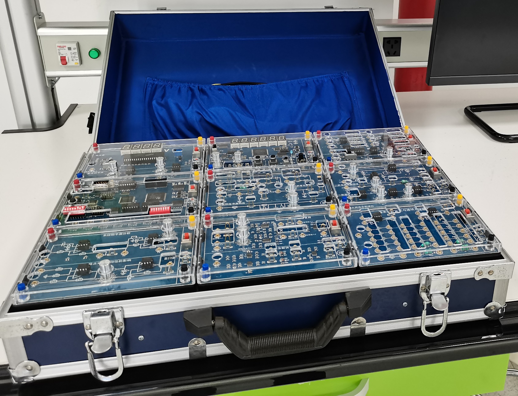 (a) 实验箱整体情况 (b) 实验箱各功能模块分布