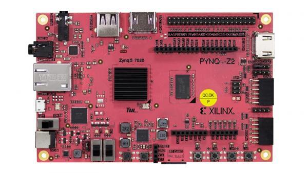 PYNQ-Z2开发板是Xilinx公司发行的ZynqSoC技术开源技术的平台的开发板,如图7所示。该平台的芯片是由两个部分组成的,分别为PS部分和PL部分,PS端是由ARM构成的,负责系统管理及流程控制,PL端则是由FPGA构成,负责进行大规模逻辑运算。PYNQ全称是Python On Zynq,是一个通过Python进行FPGA开发的框架,为FPGA硬件模块设计添加Python接口,通过Python即可调用已经设计好的FPGA电路模块。