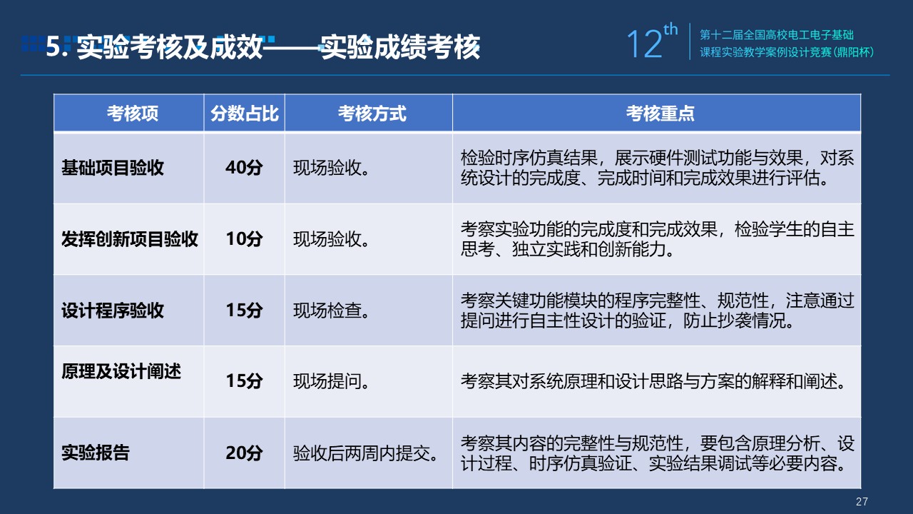 | 完成度 | 从设计系统的功能、性能指标完成情况,以及系统运行的正确性、稳定性等方面给出综合评分。 | 30% | |