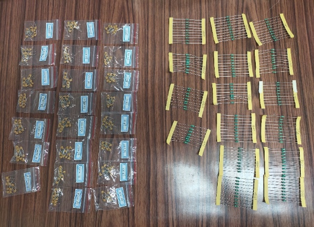 (非谐振频率)和满足测量条件的两个支路的R、L、C的值。同时在面包板上搭建好测量电路。 -