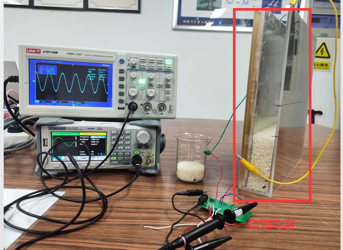 *扩展实验(选做):*利用自制平行平板电容器(学生自制或者实验室提供以前学生自制),通过在电容器中加入不同的物质来改变电容,再通过测得