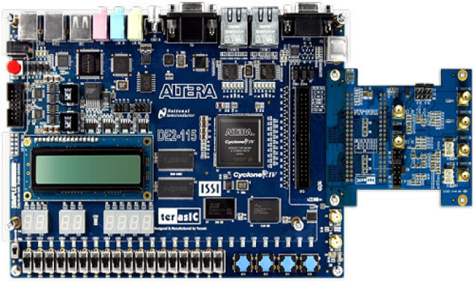 图 1 DE2-115开发板及扩展子卡ADA-HSMC