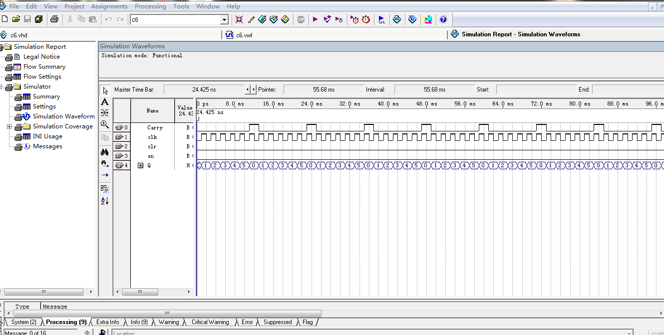 (3)QUARTUSII软件进行vwf波形仿真;