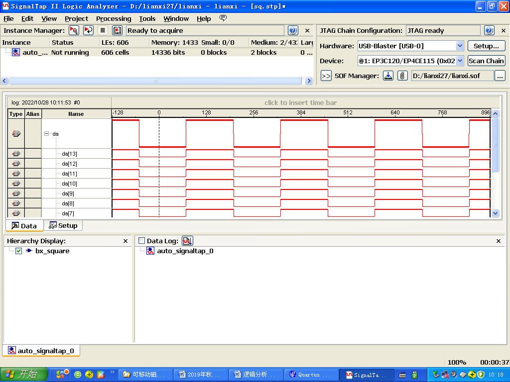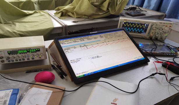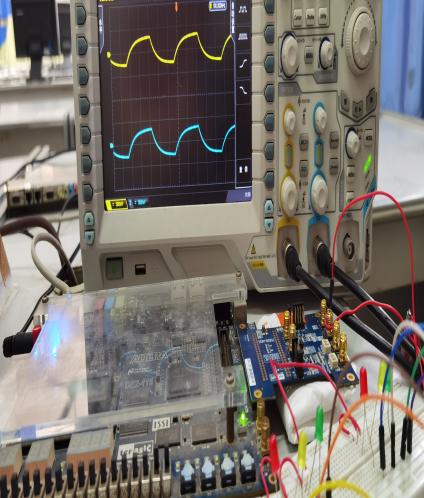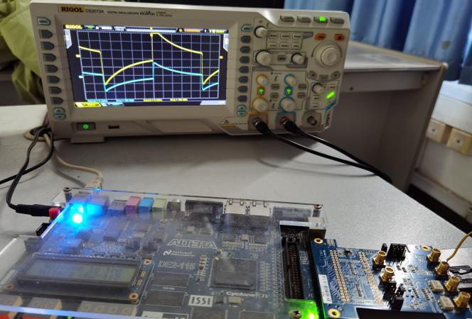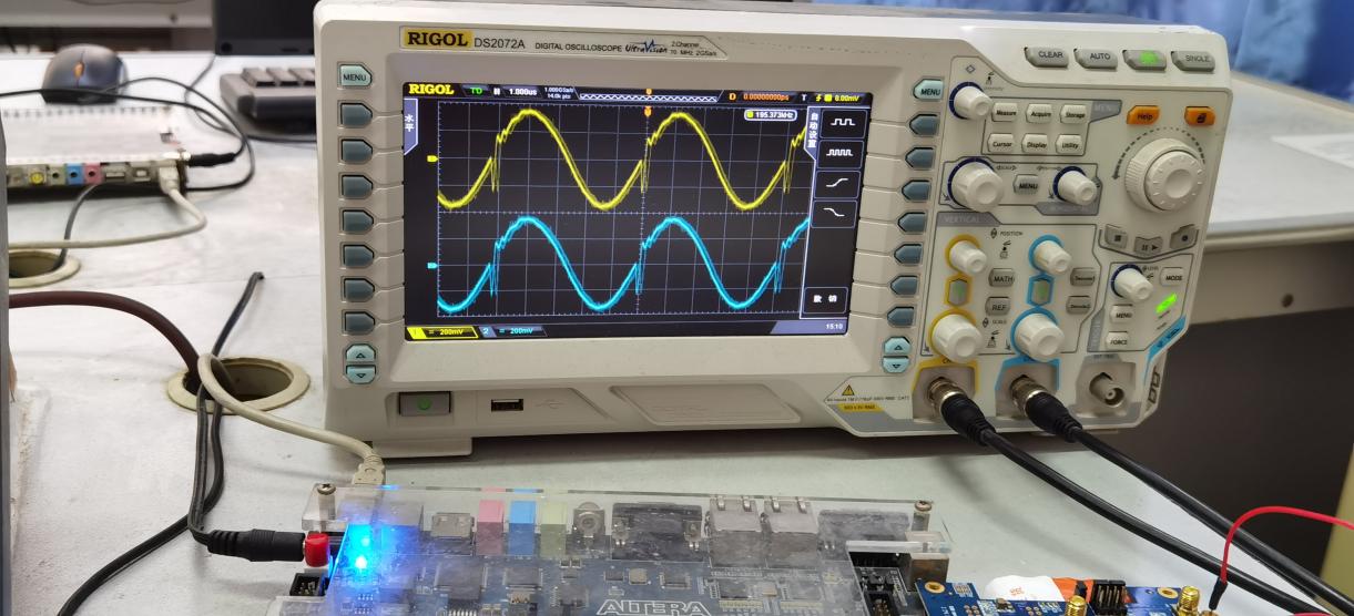 (6)将电路下载到FPGA,连接子卡ADA和示波器,进行硬件功能测试,调试参数,优化方案,鼓励优秀小组进行创新设计;