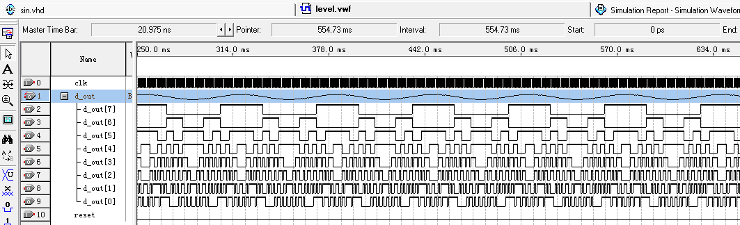 ①实验基本要求:用硬件描述语言VHDL编程实现电路功能,能够产生锯齿波、三角波、方波以及正弦波四种波形,并且可以根据需求选择输出其中一种波形,同时具备调频、调幅、调占空比的功能。