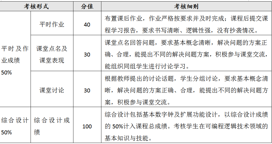 围绕知识、能力和价值三维度建立评价体系,采用多元考核评价机制,综合评估学生的创新探索、工程实践、自主学习等综合素质,成绩评定主要由实验预习、过程管理、实验验收、实验报告、答辩汇报等五部分成绩总和构成。