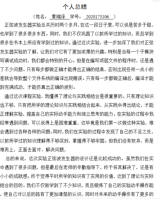 本课程的实验过程是一个比较完整的工程实践工程,需要经历原理预习、参数论证、电路性能测试、现场调试、数据测量、波形观察、设计总结及项目拓展等过程。