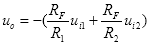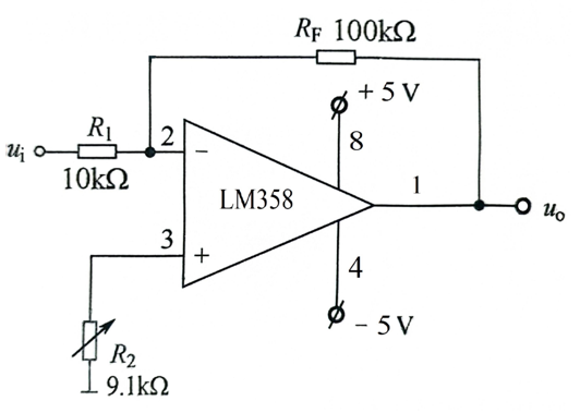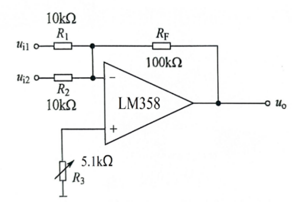 反相加法运算电路如图9所示,根据“虚短”和“虚断”原则,函数关系式为: