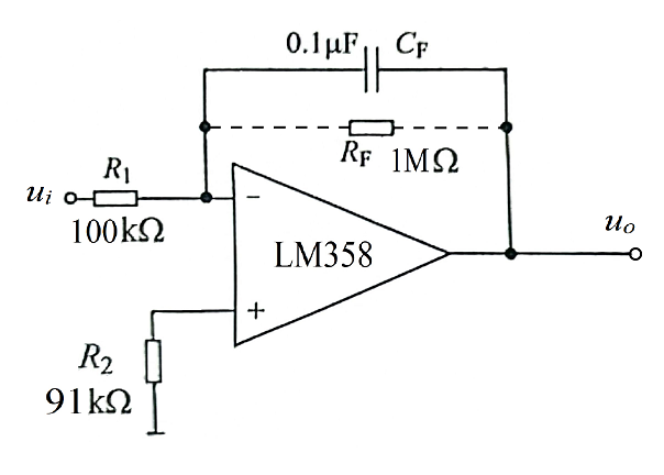 在实际应用中,常在电容上并联一个大电阻RF,可以提供直流负反馈稳定工作点,防止输出饱和,限制低频增益,以及确定积分器的有效频率范围。